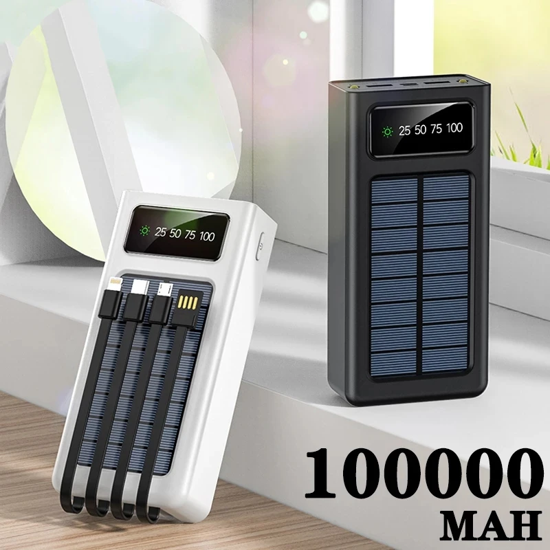 Ultra Power Bank de 100000mAh de bateria para os momentos onde você não acesso a energia elétrica. Também pode ser recarregado por meio da luz solar. Com esse super Power Bank você tem até 20 cargas.